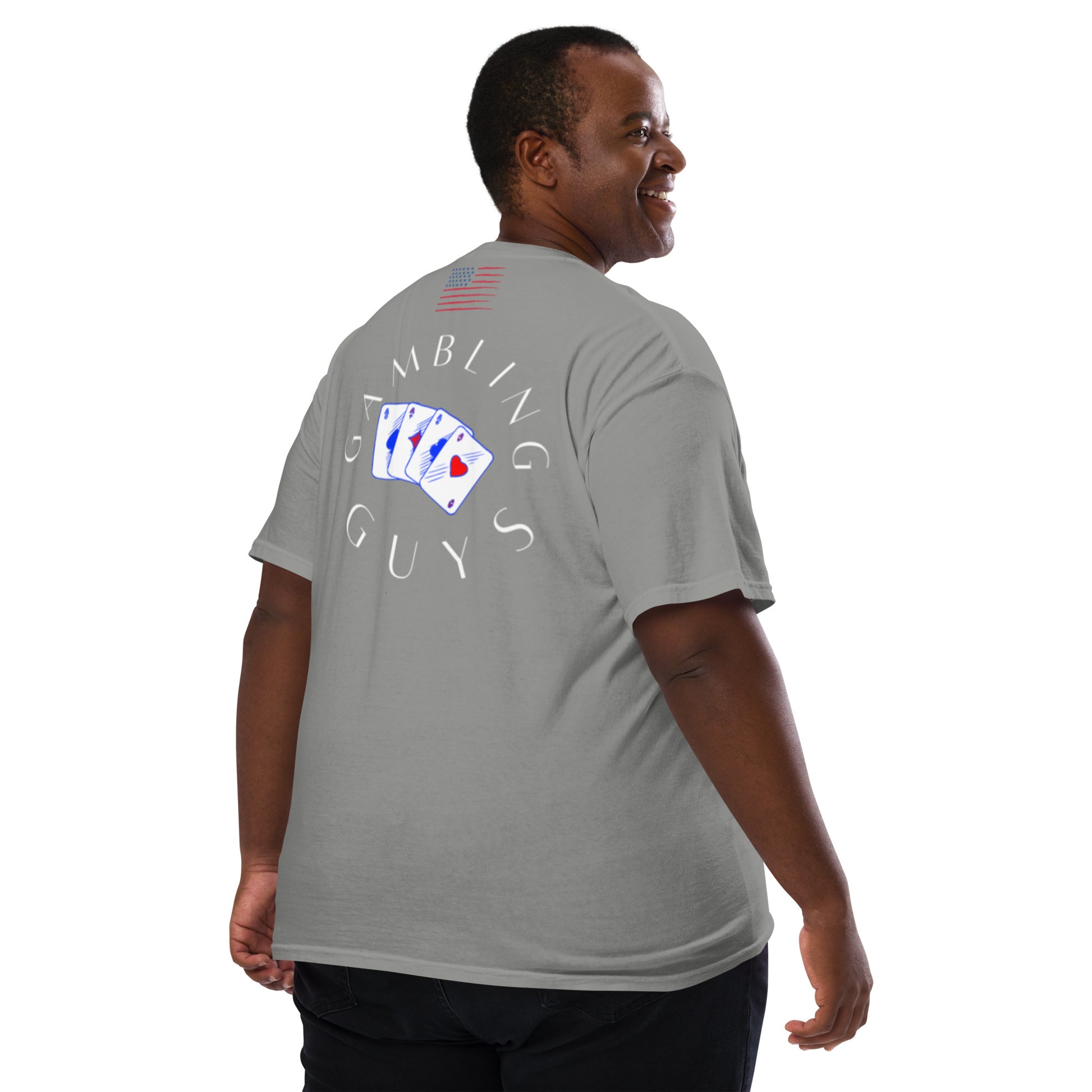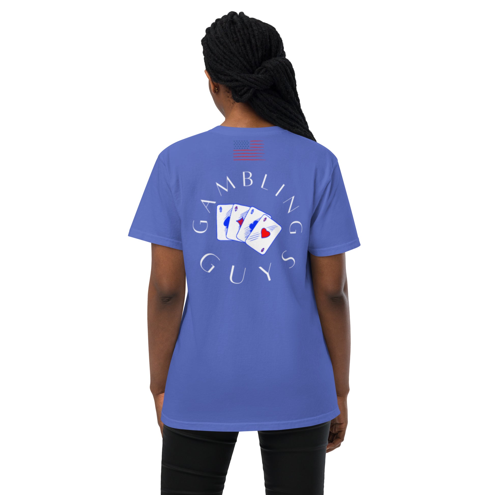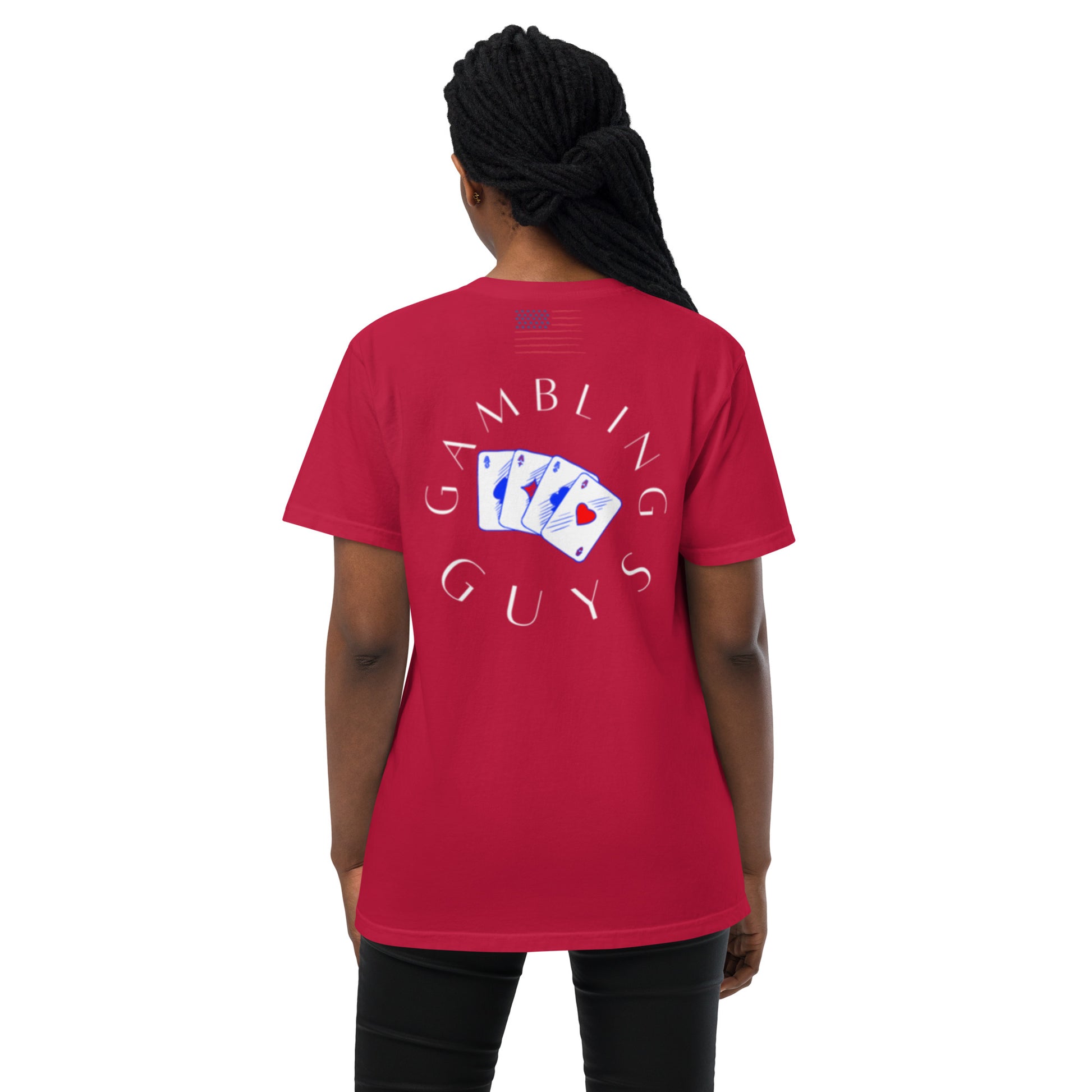 • Double-needle stitched collar, shoulders, armholes, cuffs, and hem