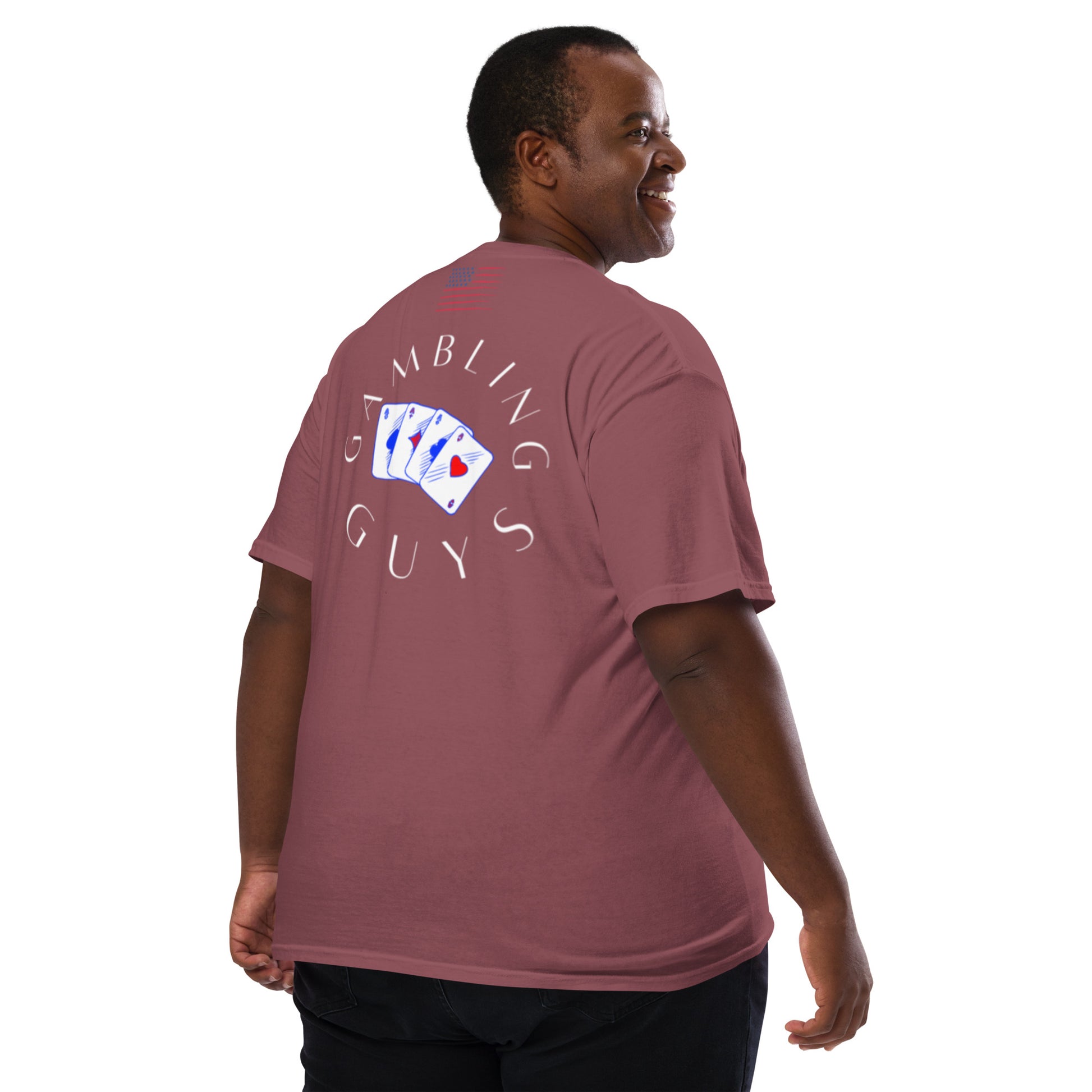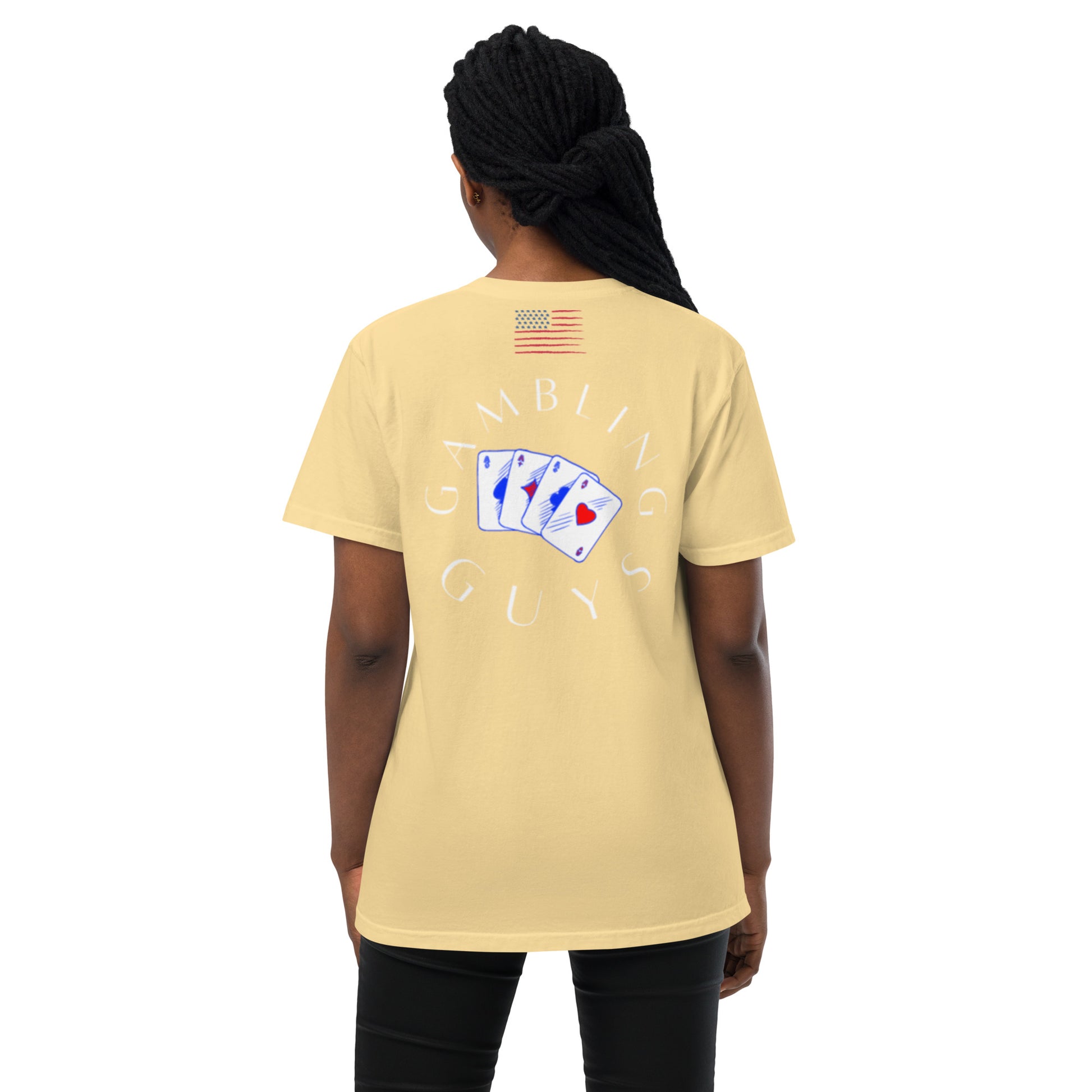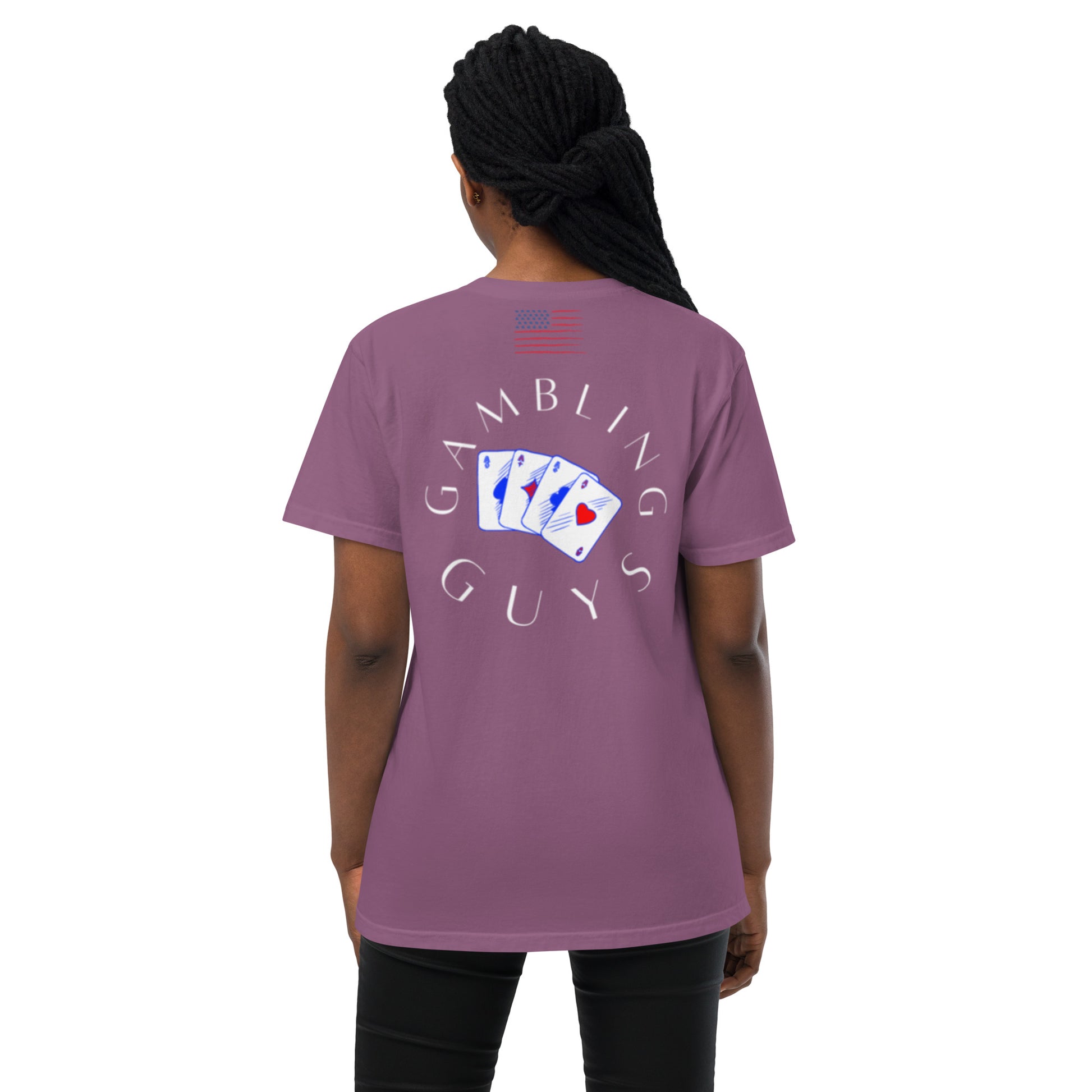 • Double-needle stitched collar, shoulders, armholes, cuffs, and hem